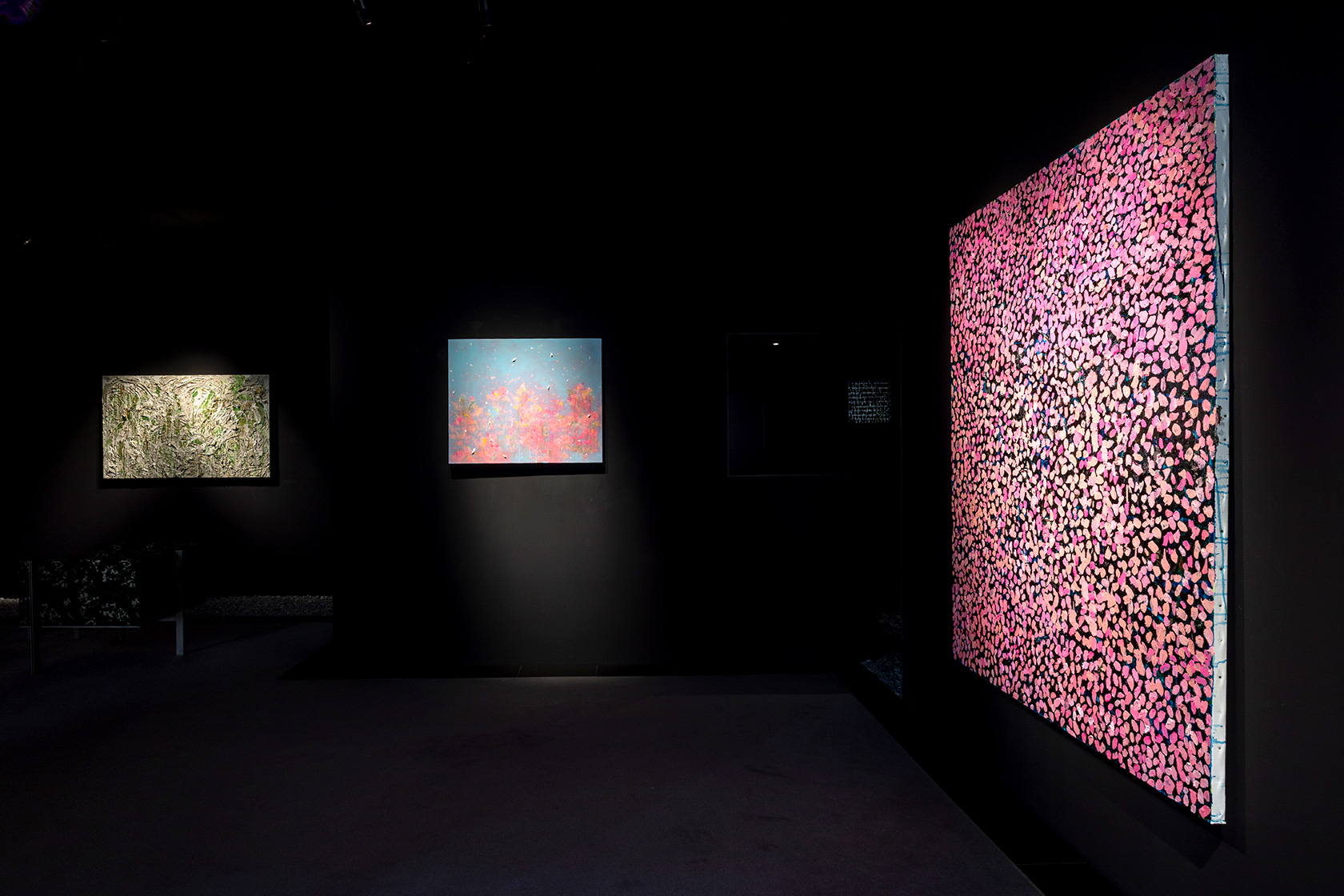 今回の展覧会は「Apoptosis(アポトーシス)」と題しました。アポトーシスとは、生物が命を繋いでいくために、細胞にあらかじめプログラムされている「細胞死」のことです。花や葉、鳥などを、次の生命を育むために変化するものとして捉え直し、そこに儚くも輝く美を捉えようと試みました。