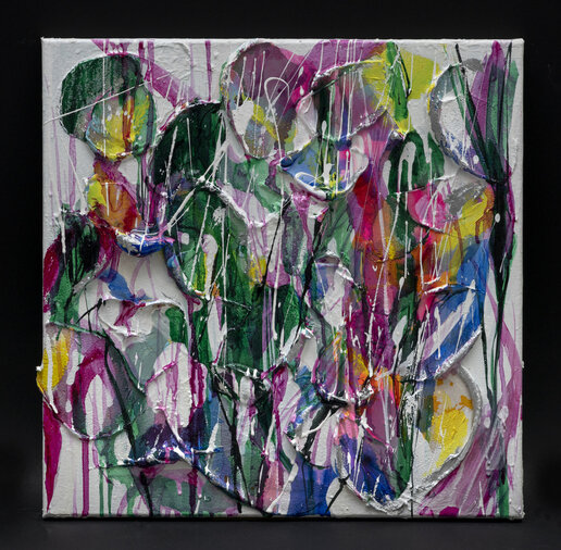 "秘密は花園" -二十連作 no.17- Painting 2021 400×400×20mm Oil and sand on canvas 作品をお買い求めの方はメールでご連絡ください。 Painting